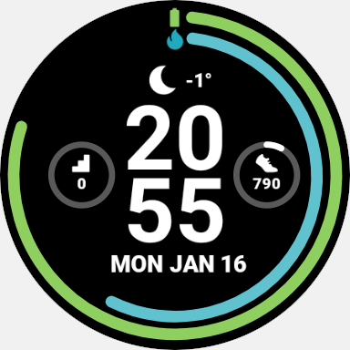 - Live watch battery indicator around the watch circumference